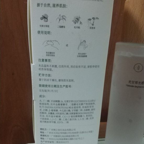 皮肤状态:混油,常有闭口痘痘,容易留痘印,肤色暗黄不均匀。 地理环境:广东,潮湿闷热 质地:清爽的水,多用几遍也不觉得黏。 肤感:好吸收,干了后也有点润的感觉,不像有的化妆水干了后好像没用过。 评价:主打功效是提亮肤色,核心成分是光甘草定,是光果甘草根提取物,被称为“亮肤黄金”,可以抑制酪氨酸酶的活性,是温和有效的美白成分。在成分表排第四,可见添加量不低。复配了VC衍生物AA2G和牡丹根提取物,多通路对黑色素起作用。 除了提亮,二裂酵母和木瓜蛋白酶起到温和去角质的嫩肤作用;羟基积雪草甙、甘草酸二钾和羟苯基丙酰胺苯甲酸起到抗炎舒缓作用;没有香精、酒精和传统防腐剂,也适合敏感肌。 香味淡淡的,挺好闻,用在痘痘上不觉得刺激,后续精华不变,与前一个化妆水比,总体的补水感觉更好。做湿敷也挺好,敷完有一点暂时的提亮和嫩肤效果。是否真的有提亮效果,要持续使用才知道。 一百多块钱的价位能买到成分这么好的精华水,性价比挺高,有提亮需求值得一试。