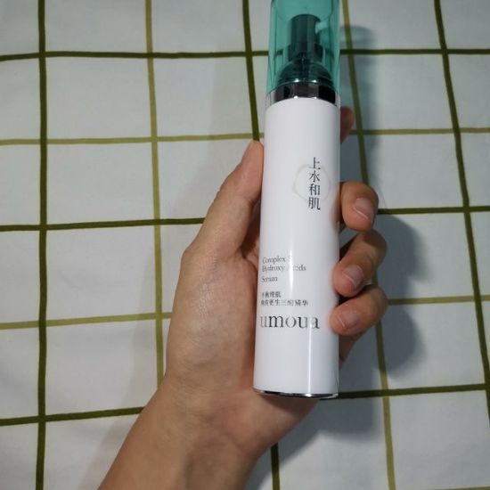 上水和肌三酸精华试用记录 产品基本: 包装:细长瓶身,按压泵口,出口较小不易浪费 质地:较轻薄的乳白色液体质地 味道:感觉是很“原料”的气味,味道不熏鼻,像洗洁精,个人不觉得难闻,能接受。 其他:随产品赠送一支祛痘凝胶,长痘时搭配使用。 肤质情况及皮肤状态: 轻度混油耐受皮,肤色偏黄,有痘印,下巴毛囊角质化,坐标深圳,极喜欢清爽肤感,经常熬夜,偶尔户外工作,有运动习惯,饮食口味日常较清淡偶尔重辣。 广东天气渐凉,面部皮肤较干,T字区轻微出油。最近作息不太规律,T字区有爆痘趋势,皮肤看起来略有暗沉。 同一时间使用的护肤品: 白天 上水生肌水+上水和肌祛痘凝胶+春日虾青素精华+943视黄醇眼霜+上水屏障修护乳+新碧金盖防晒(含酒精) 夜间 上水生肌水+春日虾青素精华/上水三酸精华+上水和肌祛痘凝胶+943视黄醇眼霜+上水屏障修护乳/雅顿金胶 第一次使用: 10.29 夜间面部清洁以后,拍水,按压两泵三酸精华从T字区开始涂抹全脸,轻薄质地很好吸收,祛痘胶点涂痘痘,后续涂抹乳液。这个时候加涂面霜也不会过于滋润,但是我不怎么爱用面霜。之后两天正常护肤,不用三酸。 因为日常护肤习惯带脖子,第一次使用时忘记了,脖子上也抹了一点三酸,第二天上班以后白天脖子和脸的连接处、下颌边缘处有起小疙瘩,有点痒。脖颈皮肤很娇嫩脆弱,用酸小心,尽量不用。除了脖子,额头部位也比较痒。 第三天皮肤上的发痒小疙瘩没有了,无异常。 鼻头上黑头有减少。