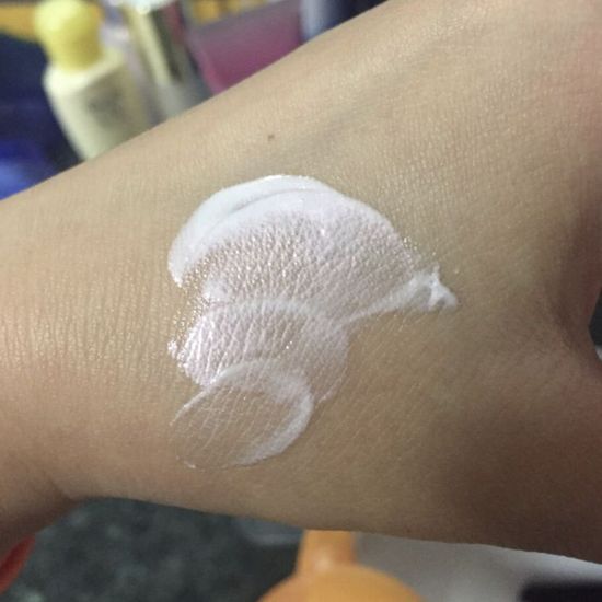 它让我觉得是油腻,这比其他的一些妆前乳来讲,它的感觉更油腻些 然后它是带很多珠光的,虽然拍出来没有那么闪,其实我觉得它可以当提亮液了 作为妆前乳来讲,我这种喜欢用强遮瑕.哑光粉底液的人.它的提亮作用在我这里完全无效,反正全部盖没了 它没有控油效果,对我来讲.它只是一个让底妆不卡粉的妆前乳而已,所以我不会去买它...