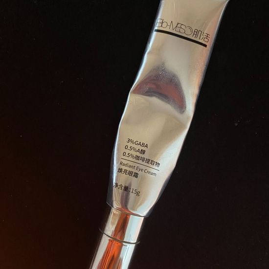 透明标签上看到成分还不错,说是华熙生物旗下的就盲买的,整体还不错吧,对黑眼圈有效果,细纹暂时看不出来,整体性价比比较高,咖啡因成分可以消肿,个人比较喜欢按摩头。