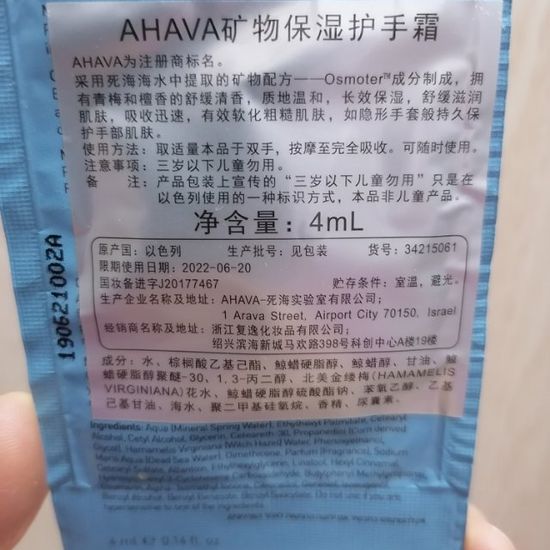 4ml试用装,每次抹的很量很少就够了,能抹挺久的。味道很香,有点类似大商场里面厕所?的香薰,还算能接受吧。 护手霜抹开之后,手会滑滑的,所以量不要涂太多。