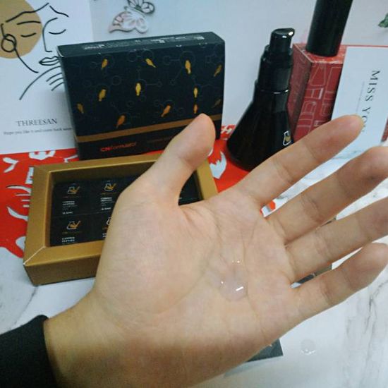 “小黑豆”蓝铜胜肽祛痘凝胶 这个一盒是16粒。 🌳这个盒子包装很有设计感,菜鸟和配方师家的东西一如既往的高端~🐿每一粒都很好撕开,撕开之后的面也是磨砂的,很用心了。🐟 🌳感觉最心水的是这个质地,名字叫凝胶,但是质地更像是凝露或者稠一点的精华液,上脸之后很顺滑,推开很容易,并且拍打之后很容易被吸收。质地和精华液的使用感觉是差不多的,不会像普通的凝胶那么的粘稠。 🌳颜色翻着淡蓝🌠,味道还是淡淡的薰衣草的幽香,淡蓝是三肽-1铜的自然颜色,具有很好的纤维细胞修复功效,修复因为痘痘产生的皮损。 另外还有添加🎏发酵型姜黄素 菜鸟和配方师品牌的主打成分了,比普通姜黄素富含更多姜黄酮,修整屏障效果更好。 🎏德舒敏 配方里面的羟苯基丙酰胺苯甲酸,提取自燕麦里面的天然舒缓成分,镇定舒缓肌肤红肿。 🎏益生自律因子 利用微生物作用,提高肌肤自愈力的理论许多大牌在用。乳酸菌提取物,改善肌肤菌群,让皮肤自我代谢能力增加。 📍使用感受:这款凝胶是作为“SOS”救急祛痘使用的,有痘痘的时候在上面厚涂一层,起到瞬效舒缓的效果。黑金三瓶系列用在手上你可能没感觉到凉凉的,涂在痘痘上就会感觉凉凉的有舒缓的感觉,原因是没有清凉剂,确实是各种精纯的提取物在辛勤的发挥作用。长痘痘的地方涂一晚上,第二天就会起到舒缓的效果,瘪下去之后涂上一层遮瑕,上妆之后就基本看不出来啦。💁💇