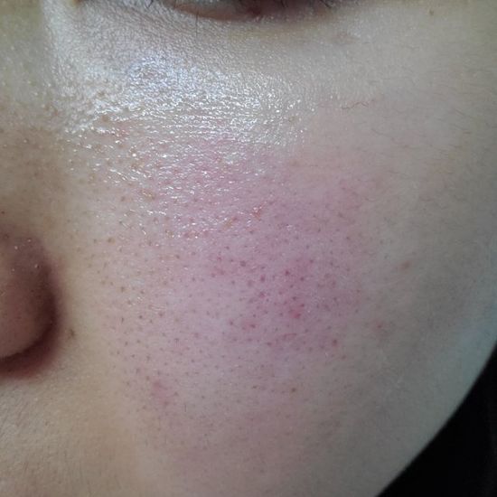 用了两瓶,已经离不开了! 脂溢性皮炎和玫瑰痤疮都可以用。修复泛红很强,对红血丝没有什么明显效果。也不会致痘,但是会轻微搓泥。 下面两张图分别是刚刚洗碗热水澡脸泛红和厚涂优色林一小时左右