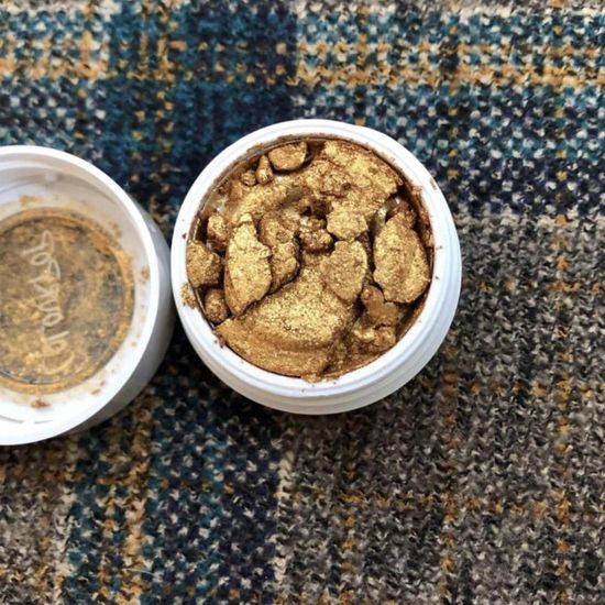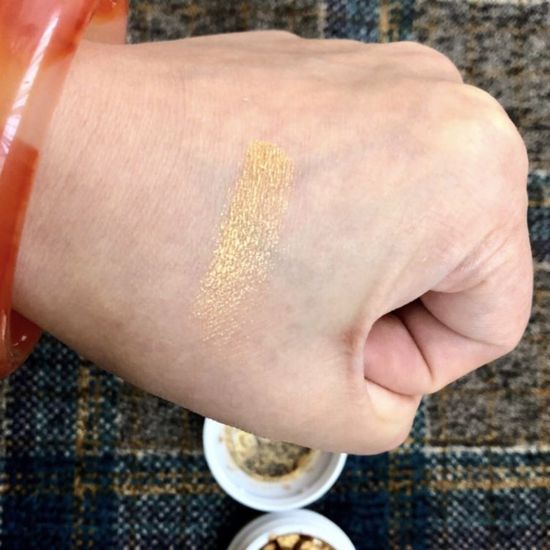 Colourpop卡乐泡泡土豆泥眼影 sixth sense 虽然摔的特别惨烈但这个终于是我要的颜色了,sixth sense 金色带亮片,亮片颗粒适中,不是大亮片色