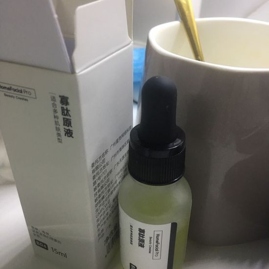 #舒缓修护# 外表看起来是淡黄色的液体,基本没有味道,也不算黏稠,流动性还是比较强的。 本人敏感肌,最近脸上爆了很多痘,处于修复屏障阶段,所以买了这瓶HFP的寡肽原液,用了将近一星期,确实给我感觉比较温和,没有刺激感,上周五晚我脸上因为长时间戴口罩爆出三颗小的红色痘痘,到今天晚上已经基本消下去不怎么能看出来了。但是,我之前脸上爆痘后留下的红色痘印,到目前为止并没有感觉有很大变化,也许坚持用下去才会有效果,因为我脸上只有红色痘印,所以只能给红色痘印的姐妹提供参考。 当然,这期间我基本没有熬夜,而且每天补充维生素,同时使用了酵母精华水和皮宝的修护霜,不能排除这些因素的影响。