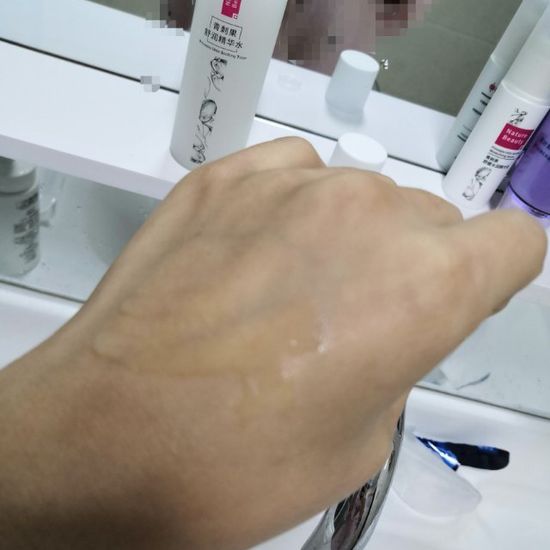 皮肤状态:混油皮,下巴有闭口,偶尔冒痘 地理环境:(北方,气候干燥,一般都在空调房) 质地:半乳白色透明液体 肤感:刚上脸有些粘稠但不油腻,很快就吸收了保湿力很足。 评价:我是下巴有闭口,偶尔冒痘,脸颊有红血丝,这款精华水真的是很温和舒服,保湿力也很足。在申请之前就查过这款精华水只要以抗炎舒缓保湿,抗氧化一同深层修复肌肤屏障的。味道也是淡淡的植物的味道。也没有传统的防腐剂,敏感肌的福音,价格也不贵,国货之光。