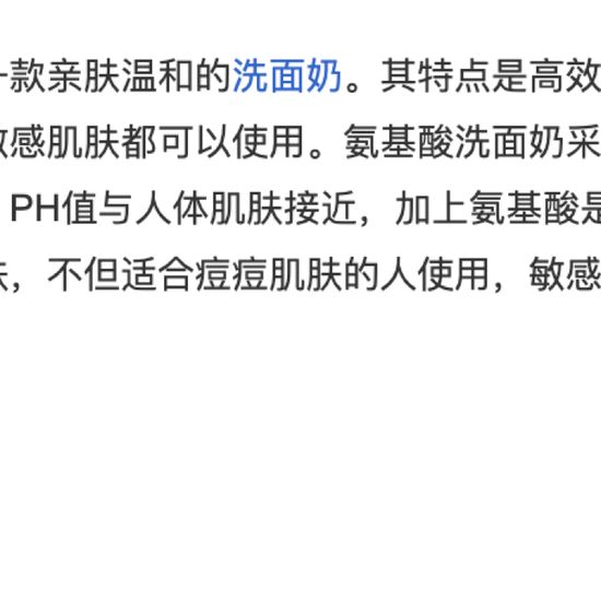 特意搜索了氨基酸成分,它的ph值更接近肌肤ph值,非常温和亲肤低刺激,敏感肌和小孩都能用,我就是一个万年敏感肌,特意对比了成分表和成分功能才敢用的!!用到现在没毛病!!!